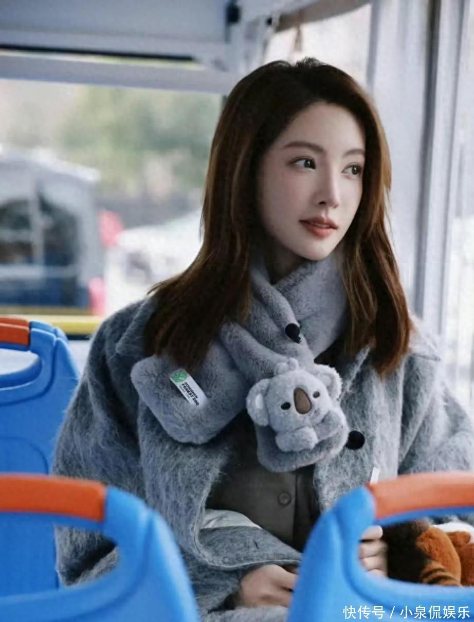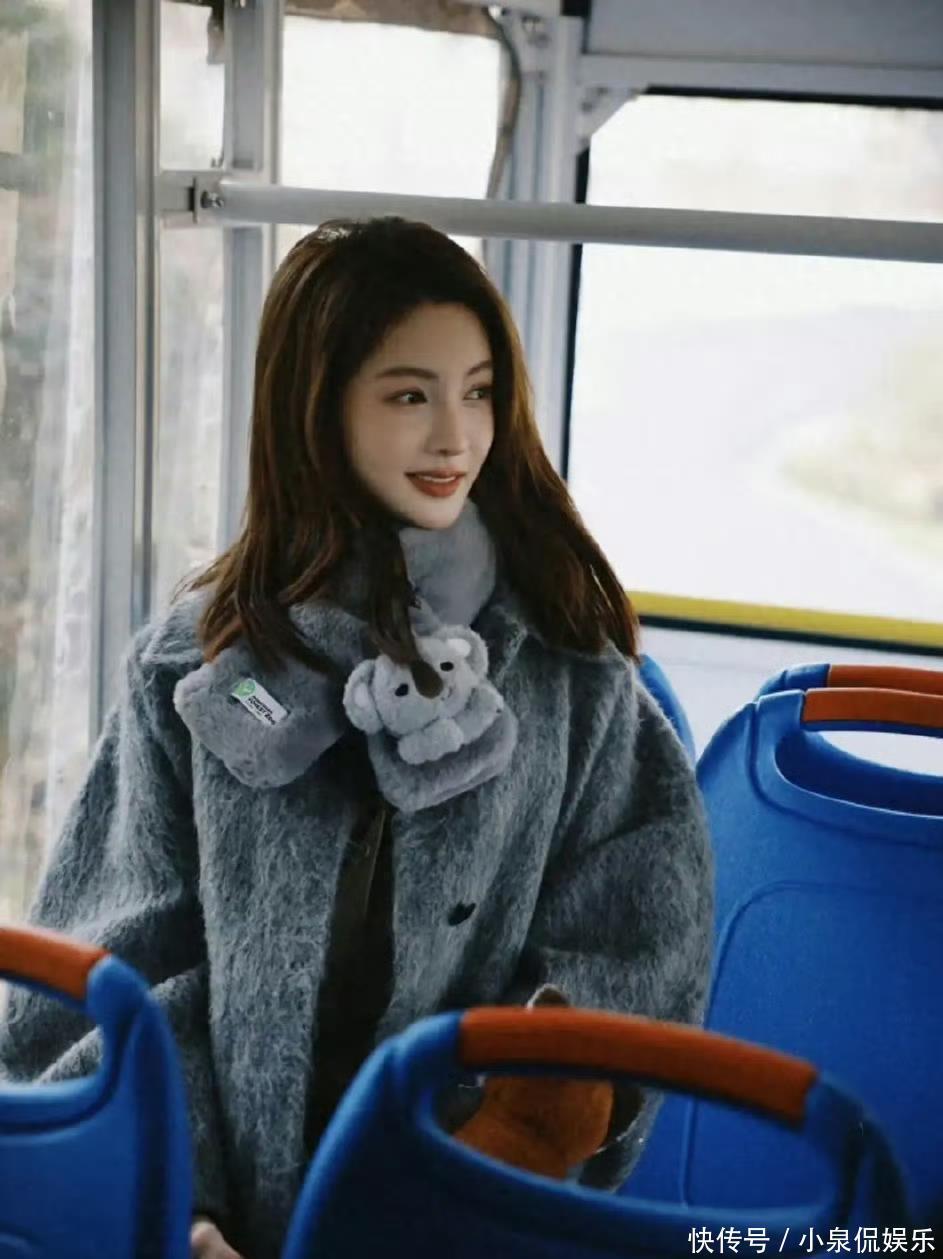 最让人惊喜的是她在公交上的状态。没有明星的架子,随意坐在靠窗位置,阳光透过玻璃洒在她脸上,发丝轻扬,眼神淡然又灵动。这种不加修饰的生活化场景,反而更凸显出她的真实美感——没有浓妆艳抹的堆砌,没有精致造型的加持,仅凭自身的气色与气质,就美得自然又动人,宛如邻家少女般亲切。